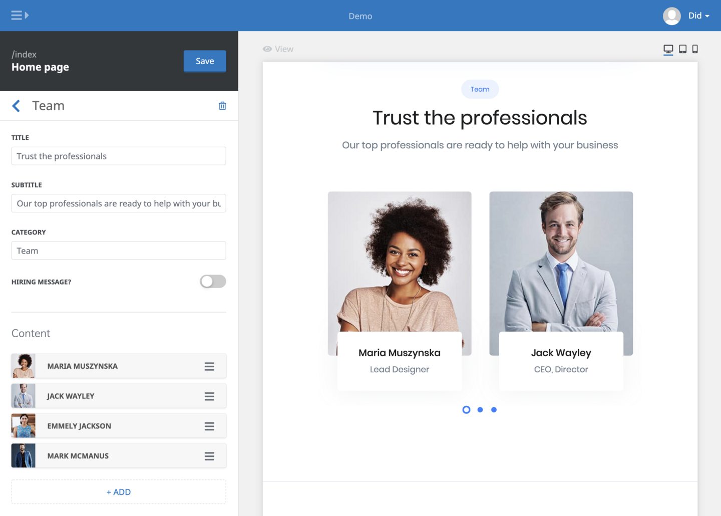 Create custom content and freely mark what parts of pages are editable for your clients.